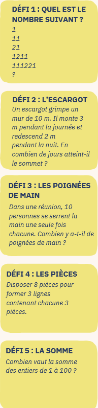 Nous vous invitons à relever vous aussi les défis proposés aux 4eme. Vous constaterez qu’ils ne sont pas si simples à résoudre !